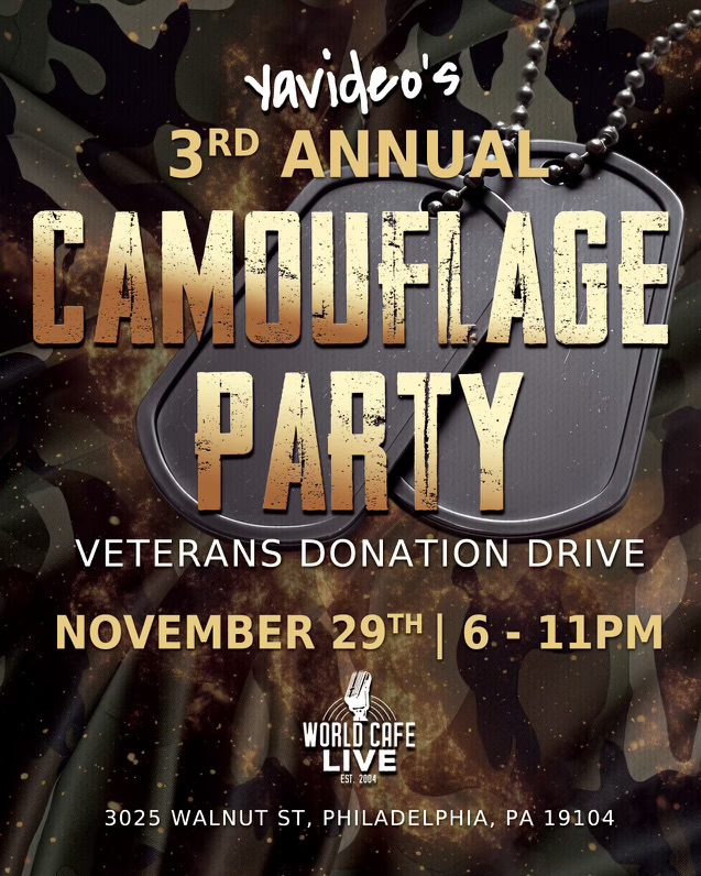 The event is focused around supporting our homeless veterans here in the Philadelphia area. This is my 3rd annual Camo Party where I invite special guest to attend to enhance what I have in place. Previous guest includes Mr Cheeks ( Lost Boyz) Mike Jerrick (Fox29) and other local on air talent and DJs ( Mike Nice, Dj Soul and Dj SoleBrother).