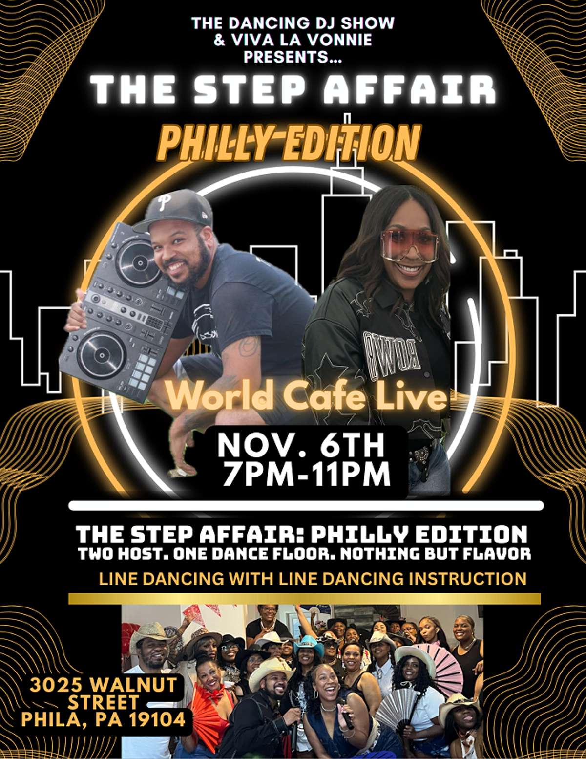 Join us for an unforgettable evening of line dancing at world cafe live! Whether you’re a seasoned dancer or just want to learn some new moves, our line dance instruction by the amazing Dancing Dj Show has you covered! This event will be one for the books! As we dance the night away we will be stepping to some of the hottest line dance songs. Grab your friends, hit the floor, and let’s make it a night full of rhythm, fun, and memories!